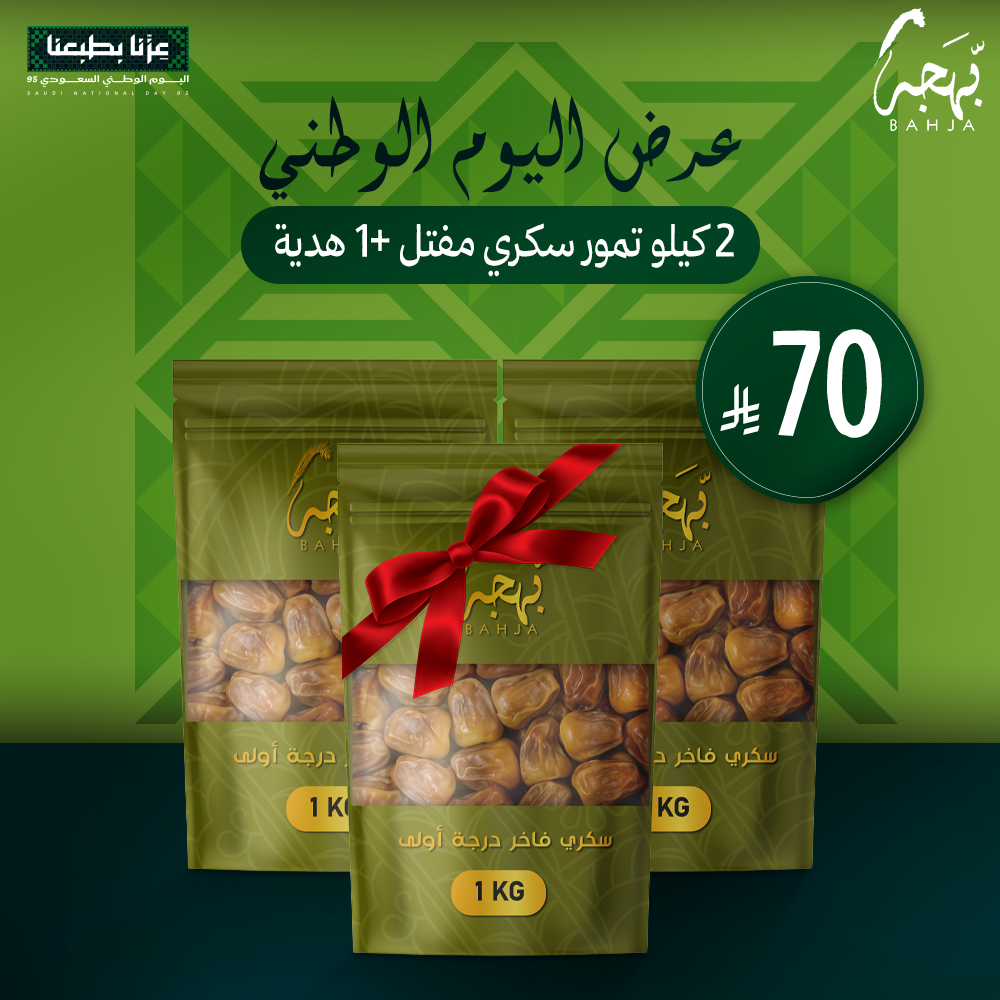 سكري مفتل من بهجة فارم هي الخيار المثالي لجعل يومك أكثر حلاوة وطاقة. مع هذا العرض الرائع، يمكنك الاستمتاع بكمية وفيرة من التمور الطبيعية المليئة بالفوائد الصحية، بالإضافة إلى هدية مجانية تقديرًا لك!